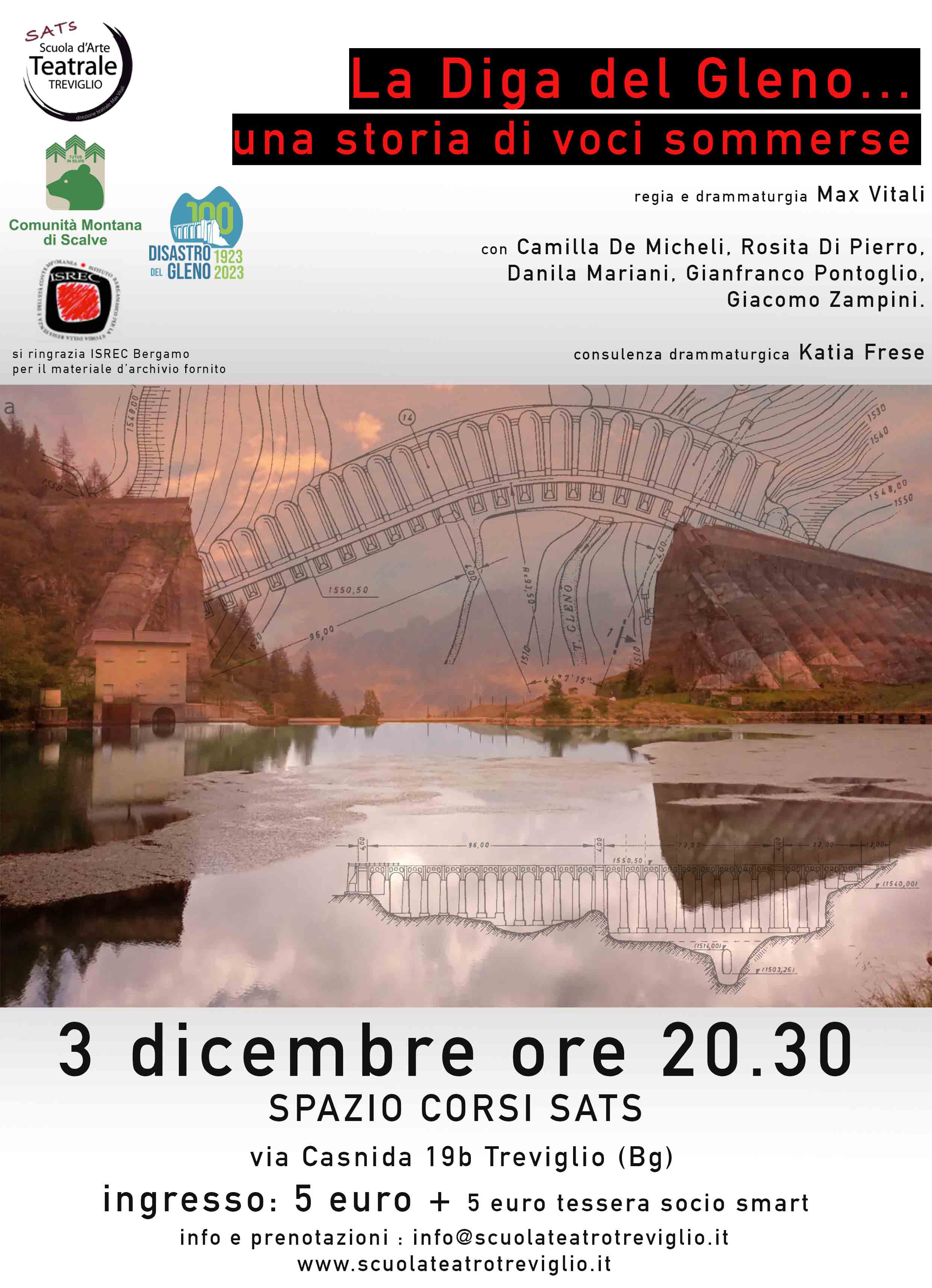 In occasione del 100esimo anniversario del disastro del Gleno accaduto l'1 dicembre 1923 SATS propone lo spettacolo "La Diga del Gleno... una storia di voci sommerse"