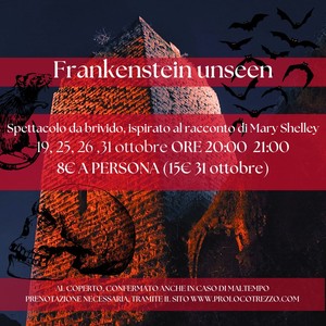 Un viaggio tra paura, mistero e oscuri segreti per rivivere il racconto ispirato al capolavoro di Mary Shelley.In una notte che mette i brividi l'anima di Victor Frankenstein è alla ricerca della sua creatura, una creatura fortemente voluta, una creatura fortemente odiata... Il suo intento è di terminare ciò che aveva iniziato, ma basterà questo per placare i suoi sensi di colpa? ... Non sempre ciò che si crea può essere distrutto...Alla fine dello spettacolo sarà possibile salire sulla cima della torre del Castello in serale per terminare la vostra serata da brivido ammirando dall'alto la Valle dell'Adda.Lo spettacolo è costruito per un target di adulti, e si sconisglia a bambini sotto i 12 anni o persone sensibili, visto le tematiche affrontate.Due turni: alle 20 e alle 21