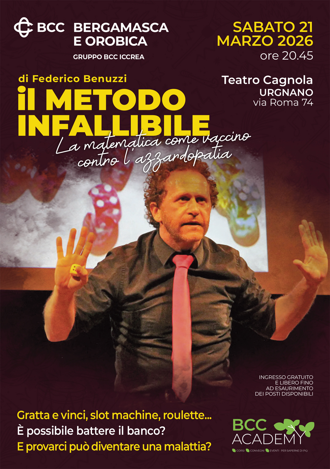Una conferenza spettacolo che tratta argomenti seri, pensata per portare il pubblico a riflettere sui concetti fondanti la matematica del gioco d'azzardo.