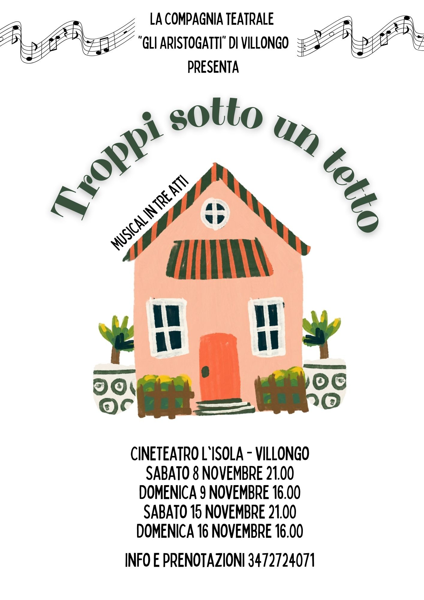 Domenica 16 novembre, alle 16, si terrà il musical «Troppi sotto un tetto» presso il CineTeatro L'Isola di Villongo, a cura della compagnia teatrale "Gli Aristogatti" di Villongo.