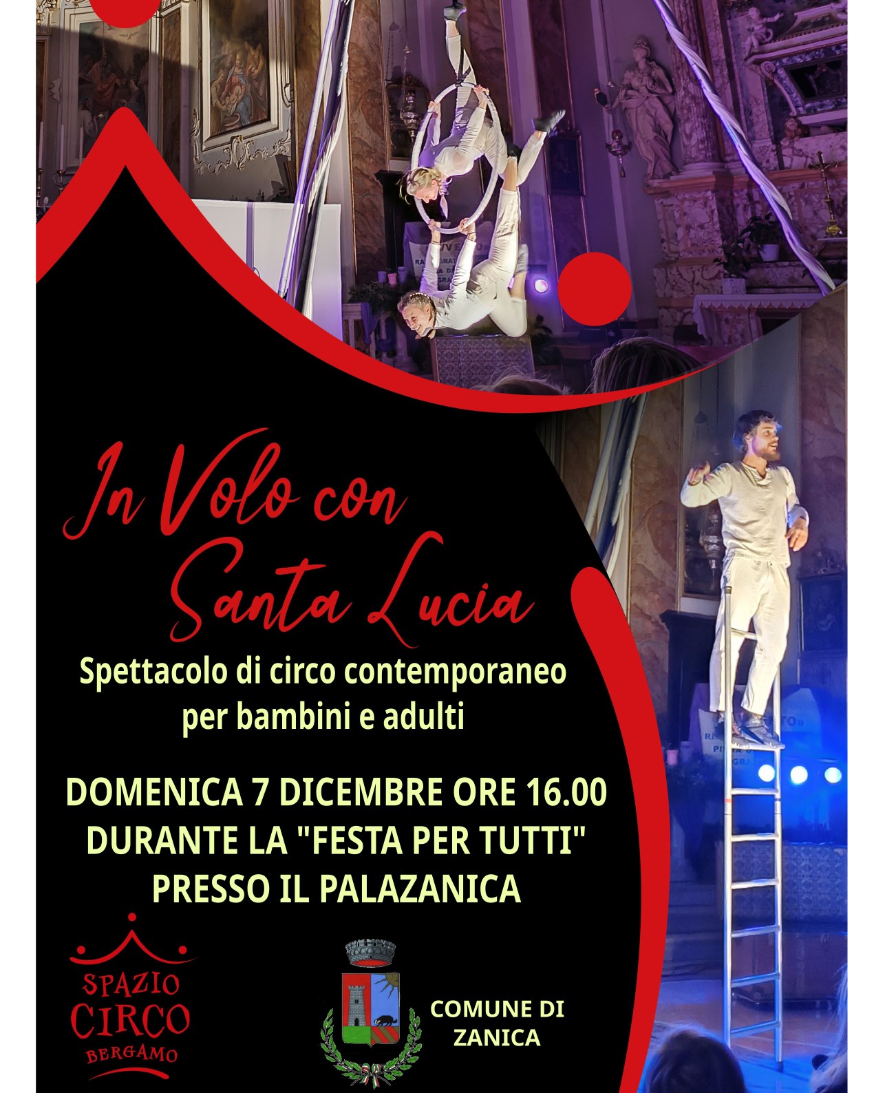 Il Comune di Zanica e Spazio Circo Bergamo invitano tutti a «In Volo con Santa Lucia», uno spettacolo di circo contemporaneo pensato sia per bambini che per adulti.