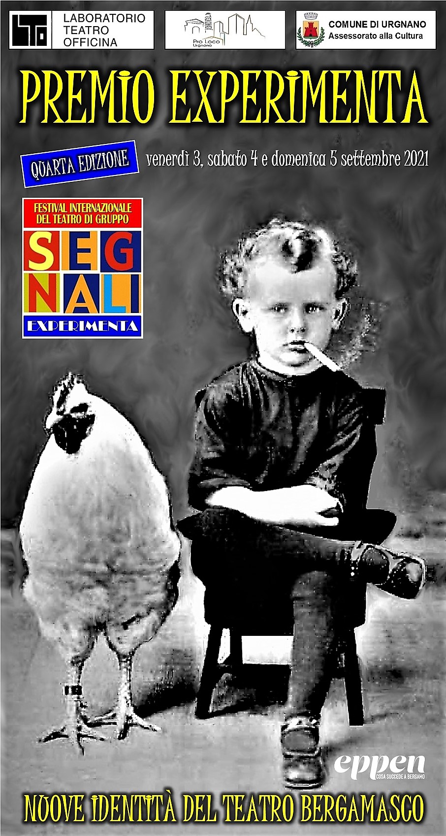 L’Associazione Laboratorio Teatro Officina A.P.S., in collaborazione con il Comune di Urgnano (Assessorato alla Cultura) e la Pro Loco di Urgnano, organizza, nei giorni 3, 4 e 5 settembre 2021, la quarta edizione del “Premio Experimenta”, un bando che ha l’obiettivo di promuovere compagnie, attori e nuove realtà produttive della scena bergamasca, dando loro la possibilità di farsi conoscere ed avere maggiore visibilità. Al concorso sono ammessi 3 spettacoli inediti o con un debutto avvenuto negli ultimi due anni nell’ambito delle produzioni orobiche. Il bando si rivolge a singoli e a gruppi di professionisti del teatro operanti sul territorio della nostra provincia, strutturati in una qualsiasi forma giuridica che consenta loro di esibire certificato di agibilità e di adempiere alle pratiche amministrativo-burocratiche necessarie per realizzare una replica dello spettacolo (stipulare contratti, emettere fatture). Sono ammessi alla selezione spettacoli di prosa, di teatro-danza, di teatro di figura e di teatro ragazzi. Una commissione, formata da esperti di teatro e organizzatori, selezionerà quelli che - a suo insindacabile giudizio - risulteranno essere gli spettacoli più originali e significativi. Ciascuna compagnia o artista partecipante può presentare un solo spettacolo. I lavori ammessi al concorso devono avere una durata compresa tra 45 e 70 minuti. Lo spettacolo proposto deve essere in regola con le condizioni per i diritti d’autore a cui l’opera è soggetta e libero da qualunque vincolo imposto dalla SIAE riguardante opere con diritti esclusivi.