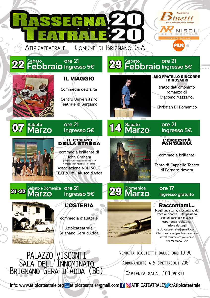 Evento inserito nella rassegna teatrale 2020 organizzata da Atipicateatrale di Brignano Gera d'Adda.