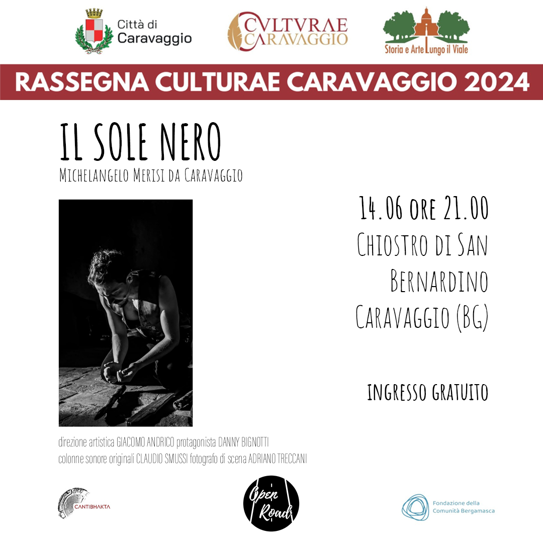 Venerdì 14 giugno, vi aspettiamo insieme alla compagnia di Giacomo Andrico e Danny Bignotti per la messa in scena dello spettacolo "Il Sole Nero", pièce teatrale su Michelangelo Merisi.