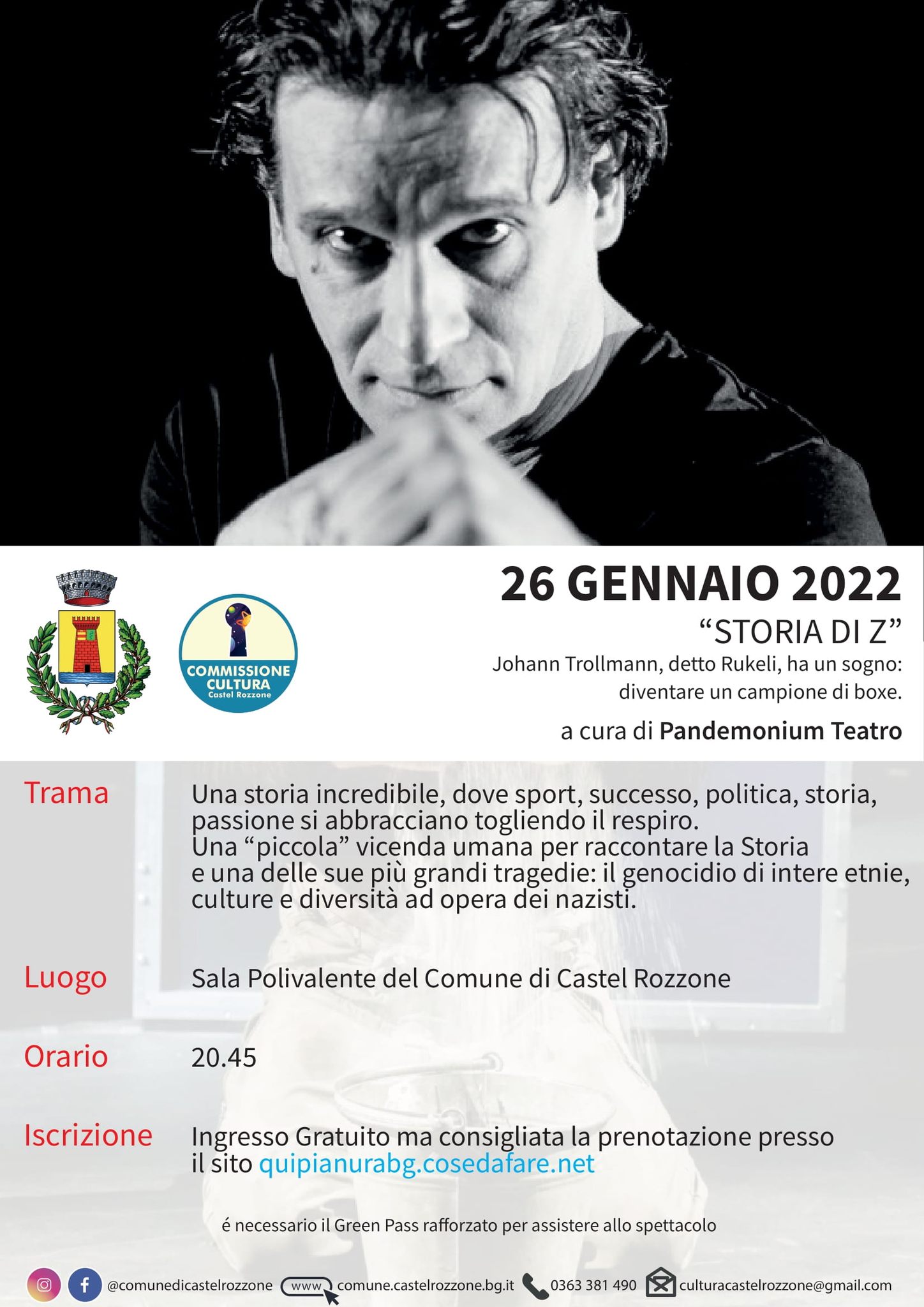 Alla Sala Polivalente di Castel Rozzone, lettura teatrale "Storia di Z" a cura di Pandemonium teatro, in occasione della Giornata della Memoria 2022.
