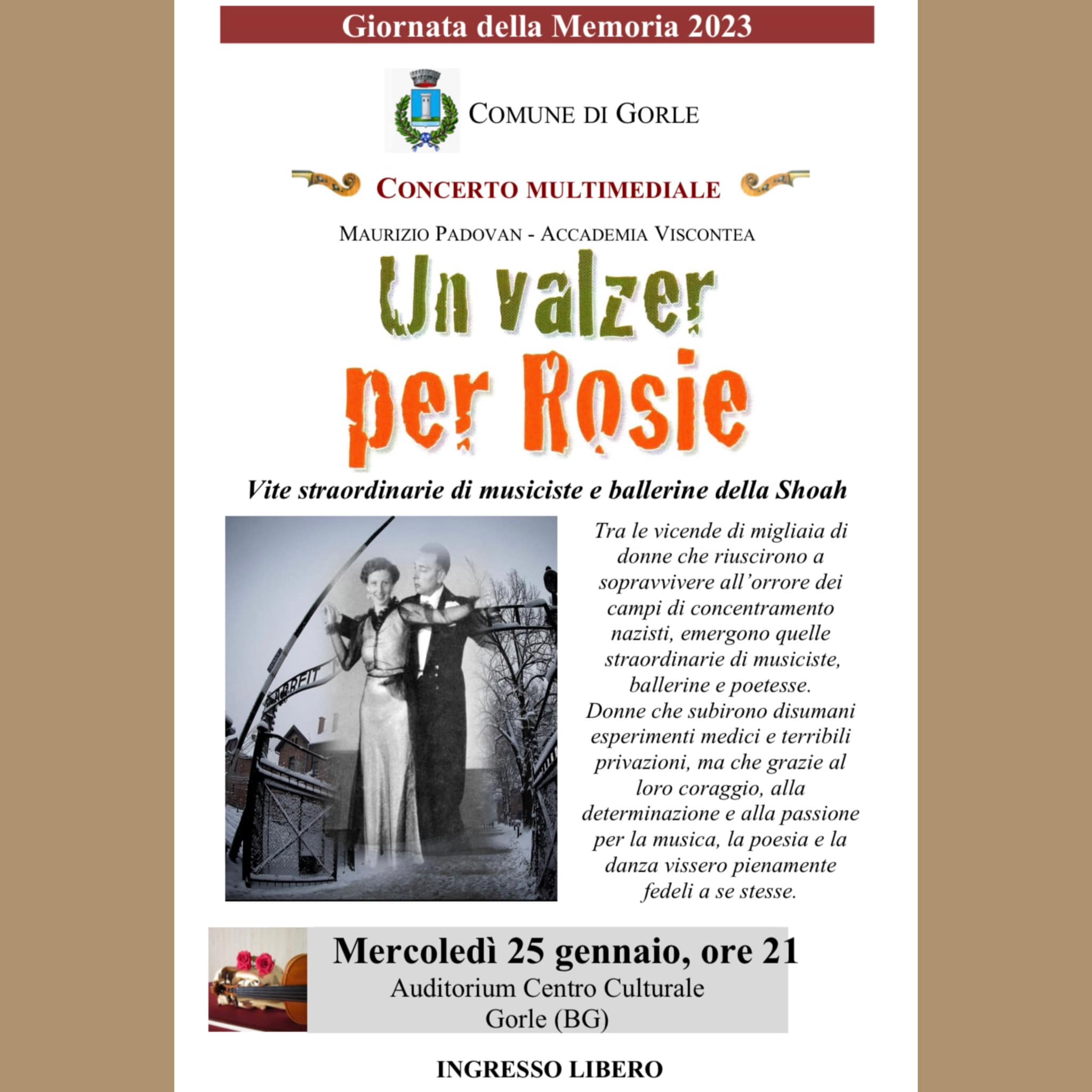 La commissione culturale del Comune di Gorle è felice di invitarvi all’evento pensato in occasione dell’imminente Giornata della Memoria.