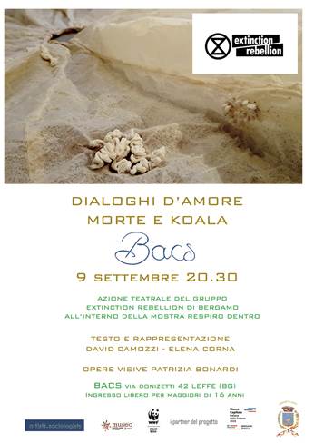 Sarร in spettacolo la prima azione teatrale del Gruppo XR Bergamo, che affronterร il tema della morte individuale e della specie umana in relazione alla crisi climatica: dialoghi d'amore morte e koala.