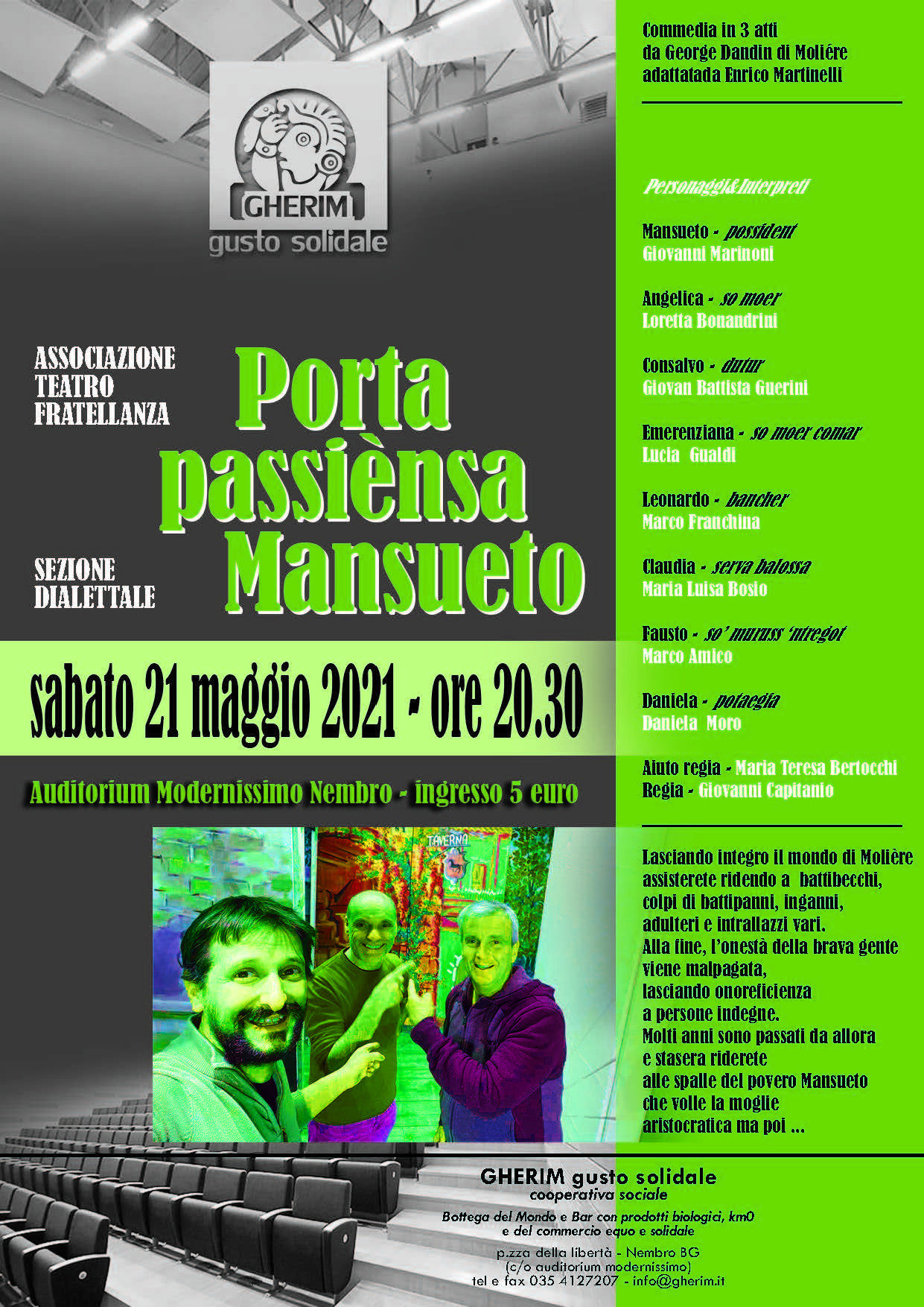 "Porta passiensa Mansueto": commedia in 3 atti da "George Dandin" di Moliére adattata da Enrico Martinelli, dell'Associazione Teatro Fratellanza.