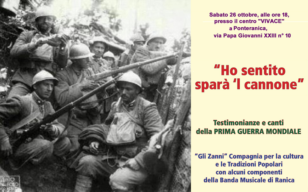 Ricordi, parole e canti che raccontano dei drammi, le paure, le sofferenze di chi ha vissuto la Grande Guerra in prima linea; la “storia dal basso” che si cotrappponeva alla retorica della “storia ufficiale”.