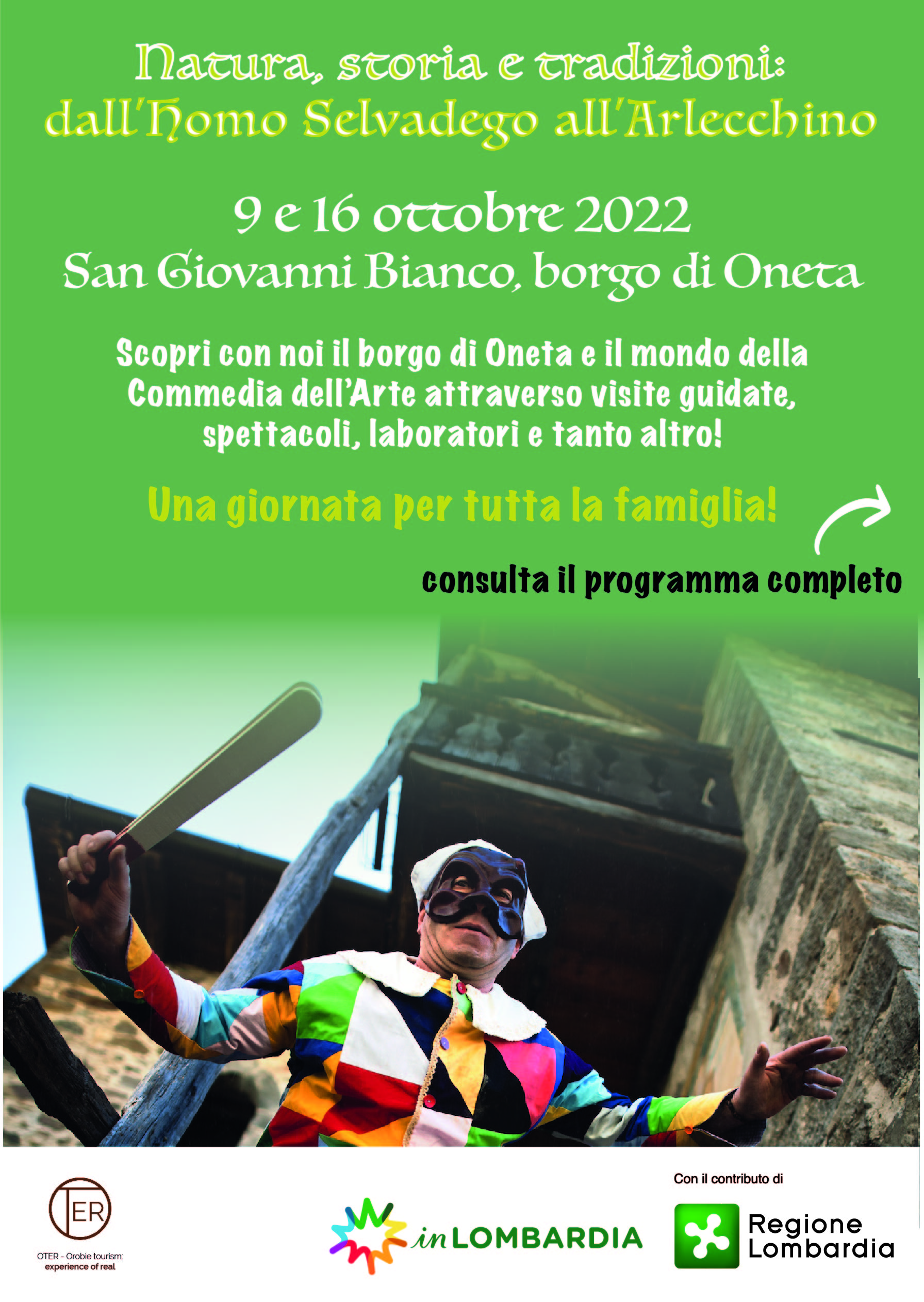Due giornate alla scoperta della natura, della storia e delle tradizioni dello splendido borgo di Oneta, frazione di San Giovanni Bianco. È quello che vi aspetta il 9 e il 16 ottobre. La manifestazione “Dall’Homo Selvadego all’Arlecchino” vedrà alternarsi visite guidate, spettacoli, laboratori per adulti e per bambini.