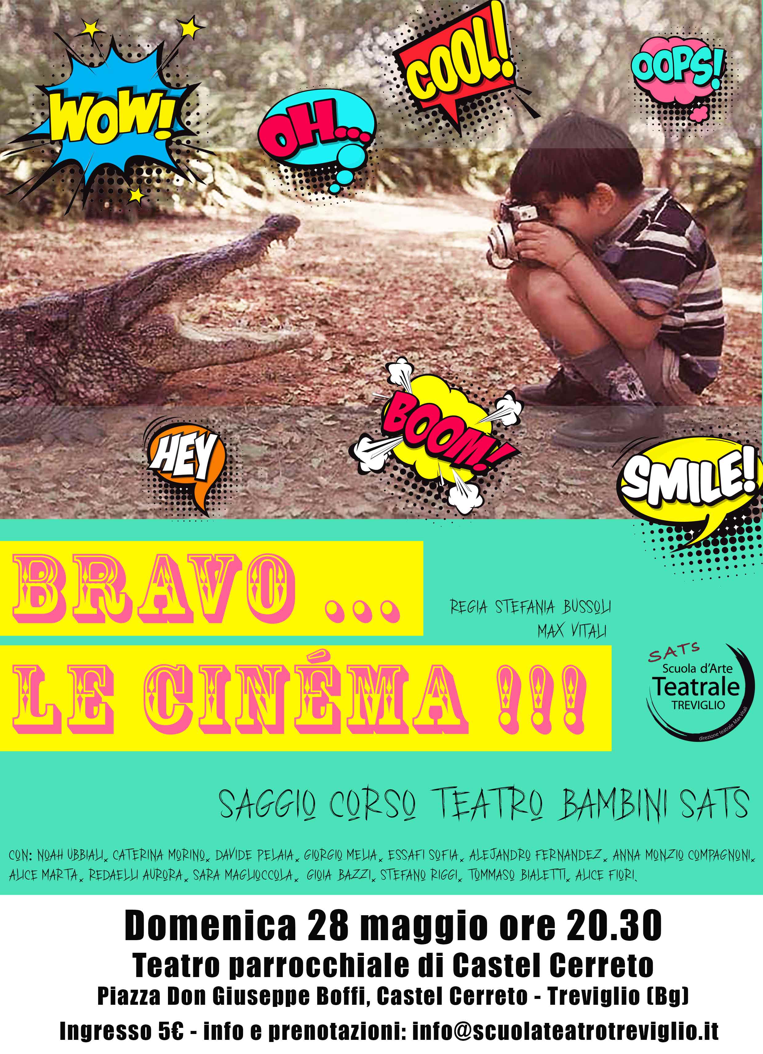 In scena gli attori del corso teatro bambini SATS con uno spettacolo che omaggia la settima arte: il cinema. Gli spettatori siederanno in platea e verranno proiettati in un excursus di epoche e generi cinematografici gustando comodamente in poltrona del pop.corn.
