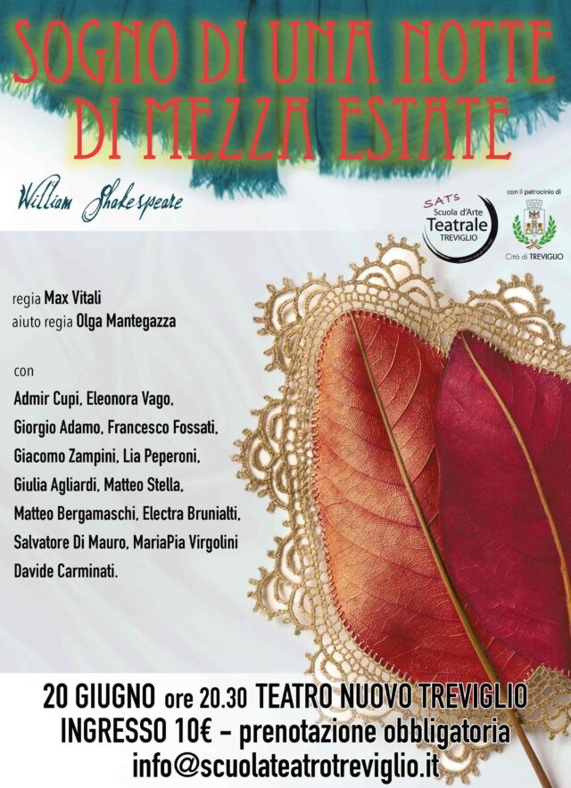 Il gruppo teatro adulti di SATs – Scuola d’arte teatrale Treviglio mette in scena lo spettacolo "Sogno di una notte di mezza estate" di William Shakespeare.