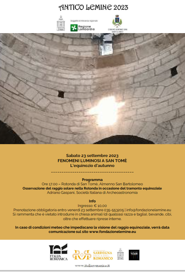 Evento: Fenomeni luminosi a San Tomè - L’equinozio d’autunno - Sabato 23 settembre ore 17
