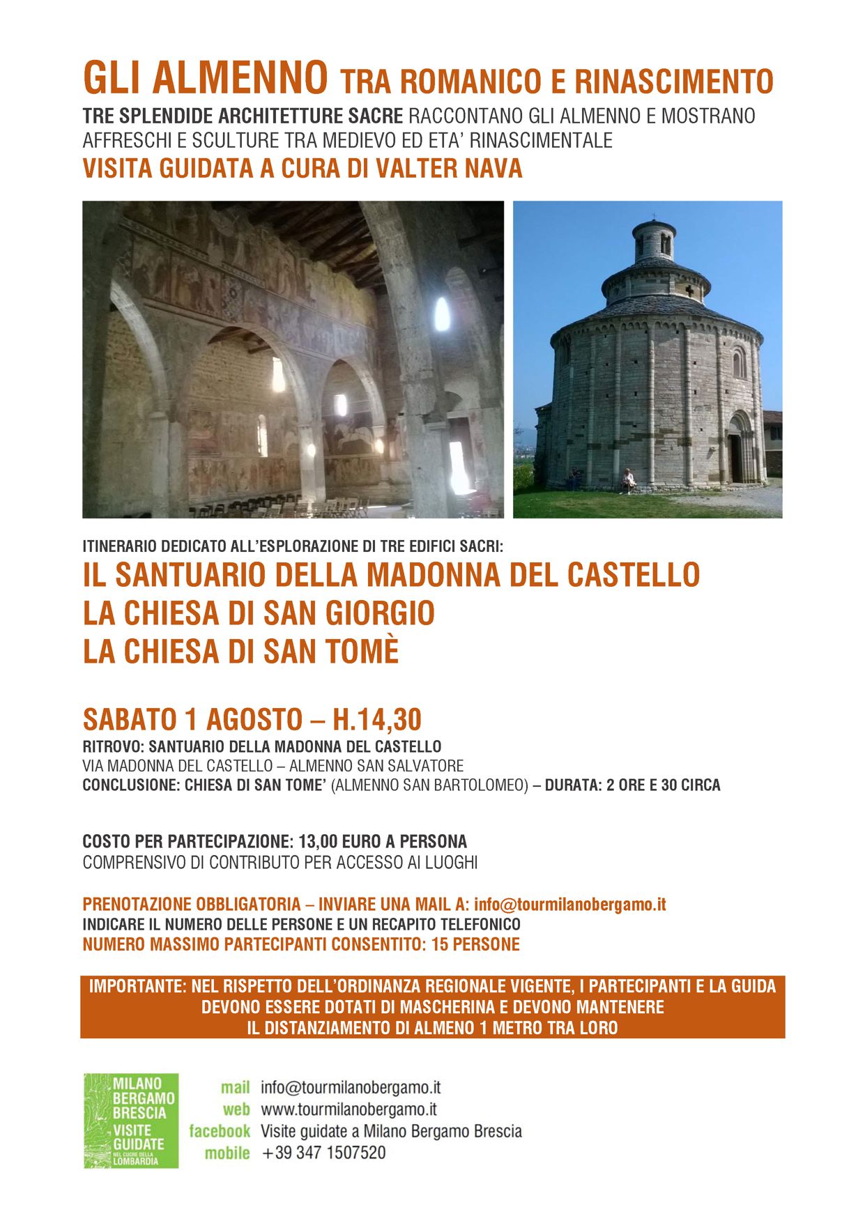 Un pomeriggio dedicato alla visita di tre autentici gioielli di architettura e arte del ricco patrimonio degli Almenno, tra romanico e rinascimento: il Santuario della Madonna del Castello, la chiesa di San Giorgio e la chiesa di San Tomè.