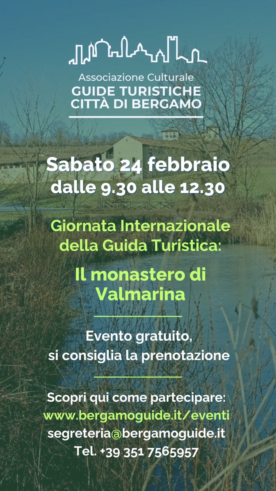 Per celebrare la Giornata internazionale della Guida turistica, che cade il 21 febbraio, l'Associazione culturale Guide turistiche Città di Bergamo propone delle visite gratuite al complesso di Valmarina, oggi sede del Parco dei Colli.