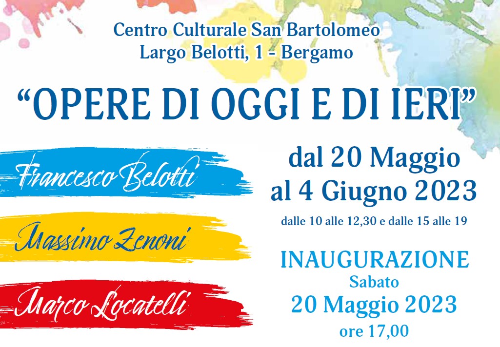 "Opere di ieri e di oggi" è un'inedita e particolare esposizione che vede abbinati dipinti contemporanei con mobili antichi. Gli artisti sono Francesco Belotti e Marco Locatelli che esporranno i loro quadri dedicati alla naturai, ai boschi, ai fiori, alla natura morta e agli animali che completeranno "l'arredamento" dello spazio del Centro Culturale San Bartolomeo, che infatti ospiterà la collezione di mobili antichi di Massimo Zenoni.