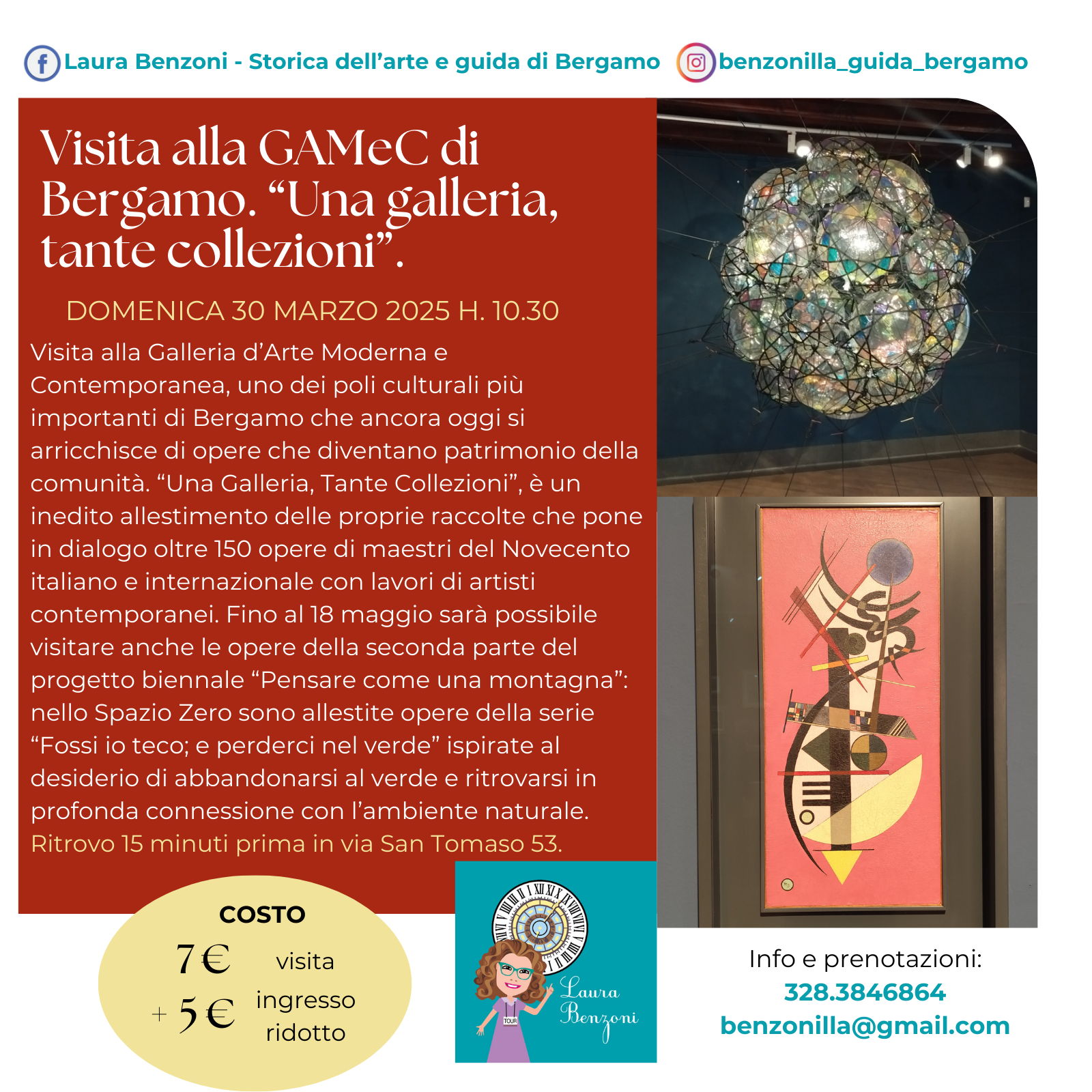 Visita all’esposizione della Galleria d’Arte Moderna e Contemporanea, uno dei poli culturali più importanti di Bergamo che ancora oggi si arricchisce di opere che diventano così patrimonio della comunità. “Una Galleria, Tante Collezioni”, è un inedito allestimento delle proprie raccolte che pone in dialogo oltre 150 opere di maestri del Novecento italiano e internazionale con lavori di artisti contemporanei, in un percorso che si snoda nelle nove sale espositive.