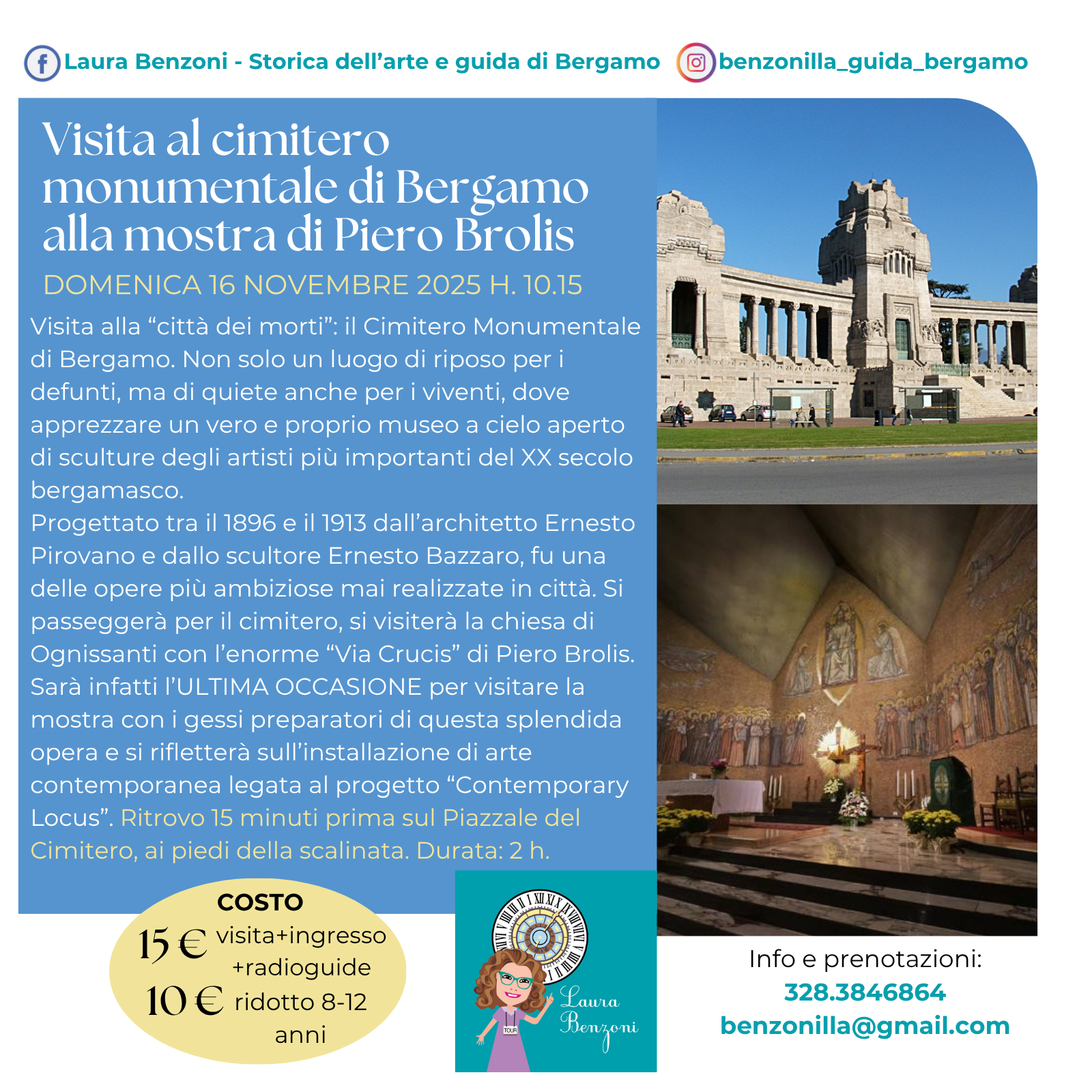 In programma una visita alla “città dei morti” che non solo è un luogo di riposo per i defunti, ma di quiete anche per i viventi, dove apprezzare un vero e proprio museo a cielo aperto di sculture degli artisti più importanti del XX secolo bergamasco.