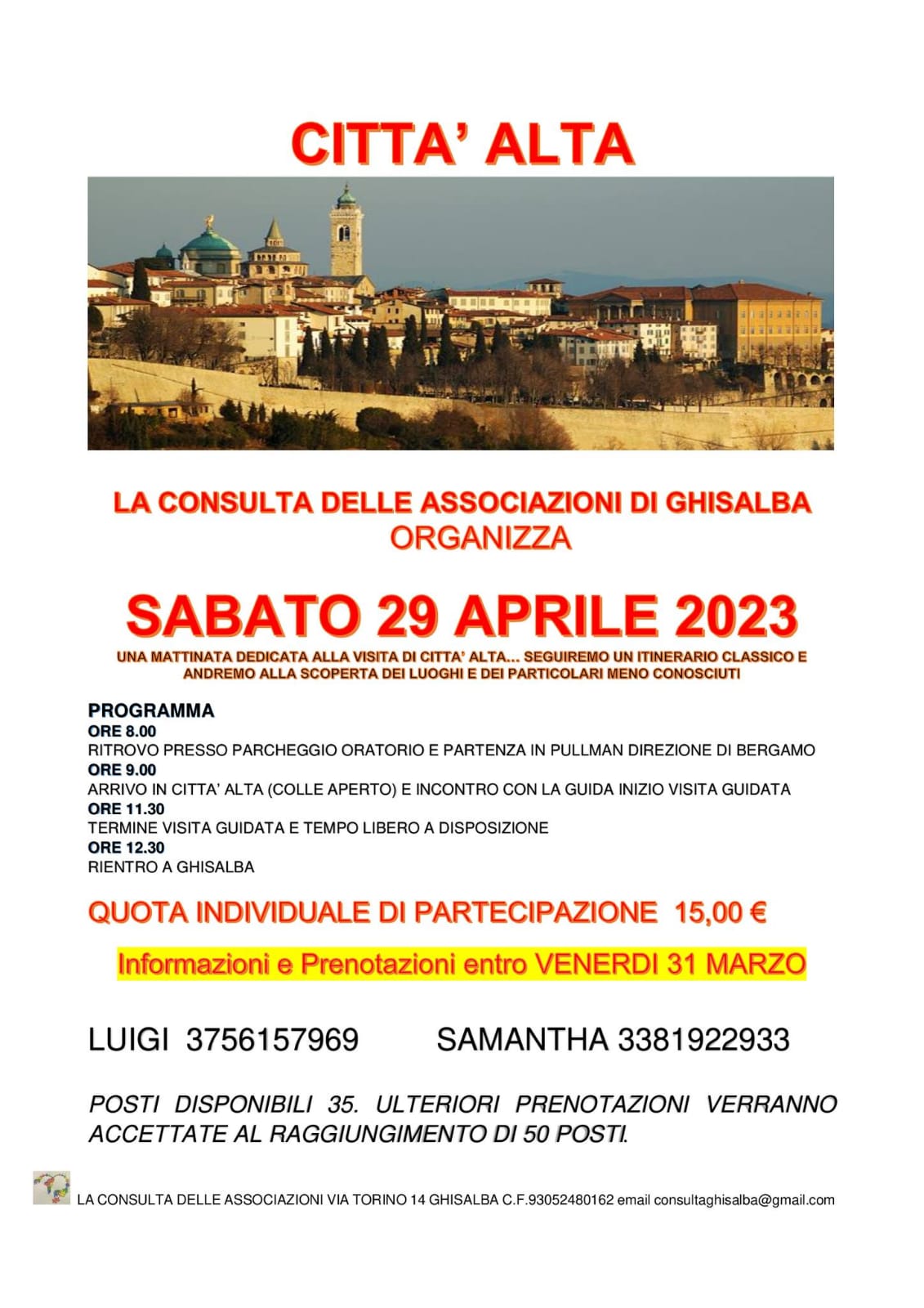 La Consulta delle Associazioni di Ghisalba organizza una mattinata dedicata alla visita di Città Alta. Seguiremo un itinerario classico e andremo alla scoperta dei luoghi e dei particolari meno conosciuti.