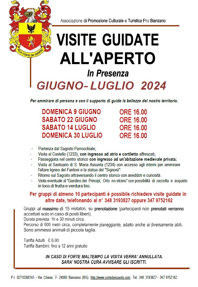 Visite guidate a Bianzano con ingresso al Castello Suardi.