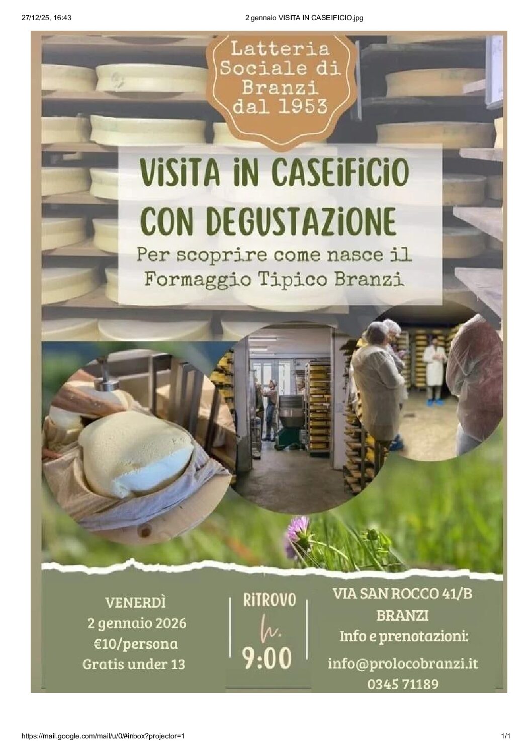 L'evento consiste in una visita guidata presso la Latteria Sociale di Branzi, attiva dal 1953, arricchita da una degustazione finale per scoprire i segreti della produzione del Formaggio Tipico Branzi. L'appuntamento è fissato per la mattinata di venerdì 2 gennaio 2026, con ritrovo previsto alle 9:00 direttamente in via San Rocco 41/B a Branzi.