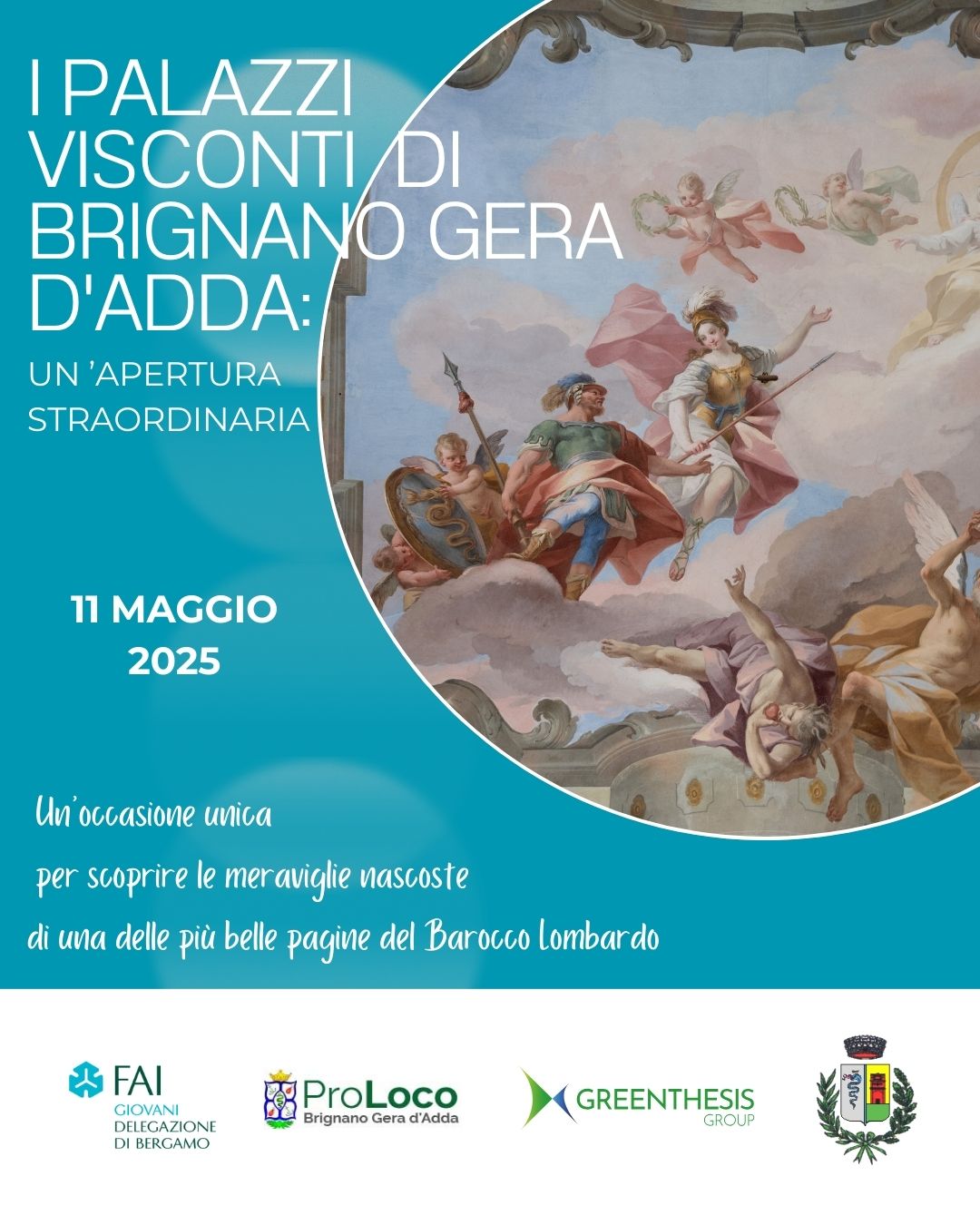 Il Gruppo FAI Giovani di Bergamo organizza la visita guidata alla scoperta di un luogo che con i suoi circa 9000 metri quadrati decorati ad affresco รจ la villa piรน affrescata della Lombardia: Palazzo Visconti di Brignano Gera dโAdda.