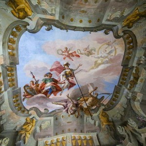 Se lโimponente scalone monumentale, gli stupefacenti saloni e gli stupendi soffitti a cassettoni lasciano sbalorditi, il bello deve ancora venire, in quanto fulcro della visita sarร Palazzo Nuovo. Attraversando le sale di questo gioiello settecentesco, di norma chiuse al pubblico, incontreremo lโEroe Visconteo, lโaccompagneremo tra le numerose divinitร greco-romane, imbattendoci in storie, miti e leggende che prendono vita grazie ad affreschi sgargianti che riempiono di meraviglia e stupore gli occhi di chi guarda.