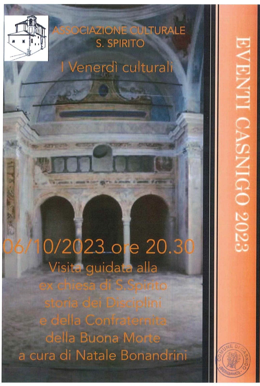 All'interno degli appuntamenti "venerdì culturali", si organizza la visita guidata alla ex Chiesa di S.Spirito storia dei Disciplini e della Confraternita della Buona Morte a cura di Natale Bonandrini.