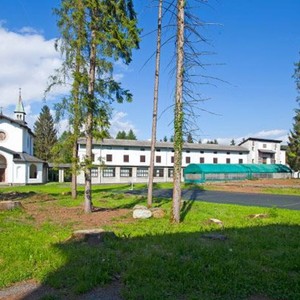 Tra il 1926 e il 1950 venne costituito un piccolo villaggio nel cuore della Pineta di Clusone comprendente la portineria con infermeria e ambulatorio, il dormitorio, la scuola, la chiesa, dedicata a Cristo Re, progettata dall’Ing. Luigi Angelini nel 1929 e affrescata da Pasquale Arzuffi, Pietro Servalli e Fermo Taragni, il teatro e la casa colonica.