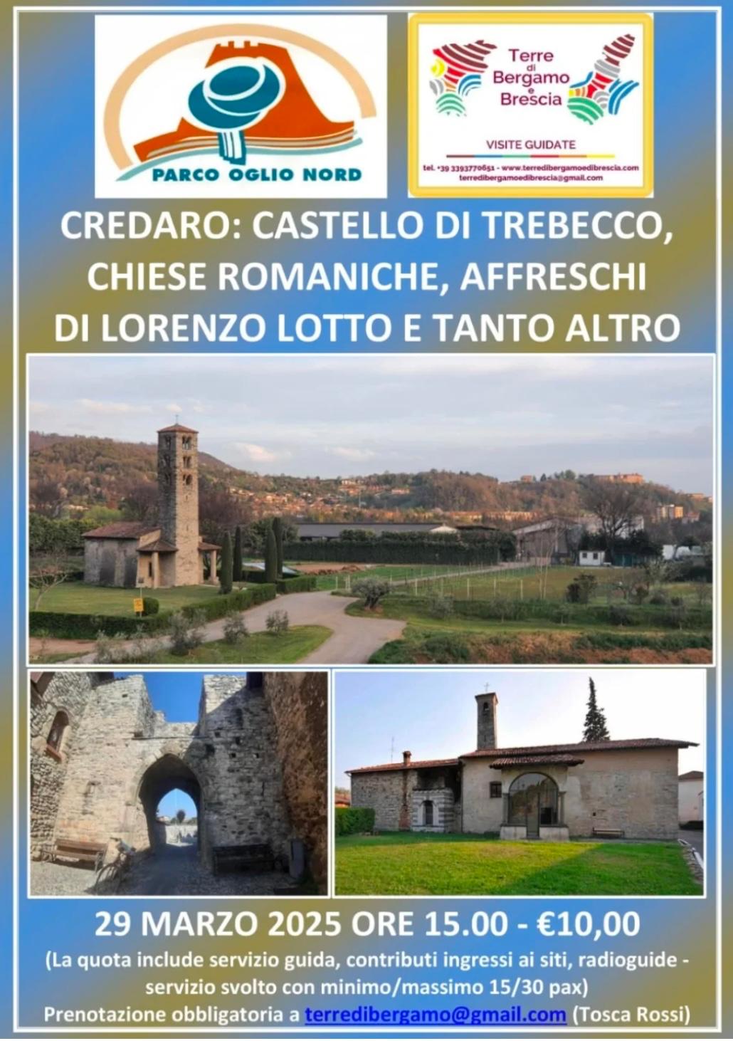 In occasione dei 500 anni degli affreschi di Lorenzo Lotto a Credaro: un viaggio tra castelli, Chiese e contrade lungo l'Oglio, con la possibilità di vedere il Castello di Trebecco, le chiese romaniche e complesso di San Giorgio.