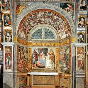 Divenuta nel 1912 Monumento Nazionale per l’importanza storica ed artistica, è considerata un pregevole documento del XVI secolo una delle rarissime rimaste in Lombardia dall’interno completamente affrescato, con cicli dedicati alla vita della Madonna, di Santa Caterina D’Alessandria, di San Bernardino e alla Passione, Morte e Resurrezione di Cristo.