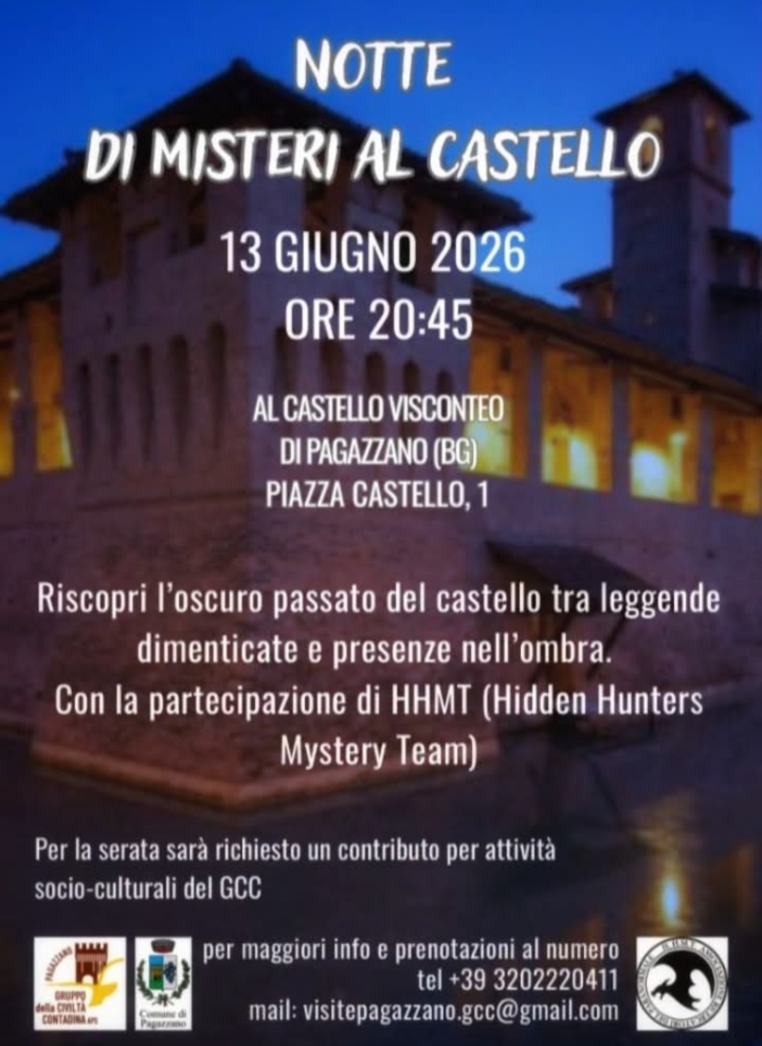 Il fascino senza tempo del Castello Visconteo di Pagazzano si tinge di mistero nella serata di sabato 13 giugno. Un appuntamento imperdibile per chi vuole esplorare il confine tra storia e soprannaturale, guidati dagli esperti dell’associazione HHMT (Hidden Hunters Mystery Team).