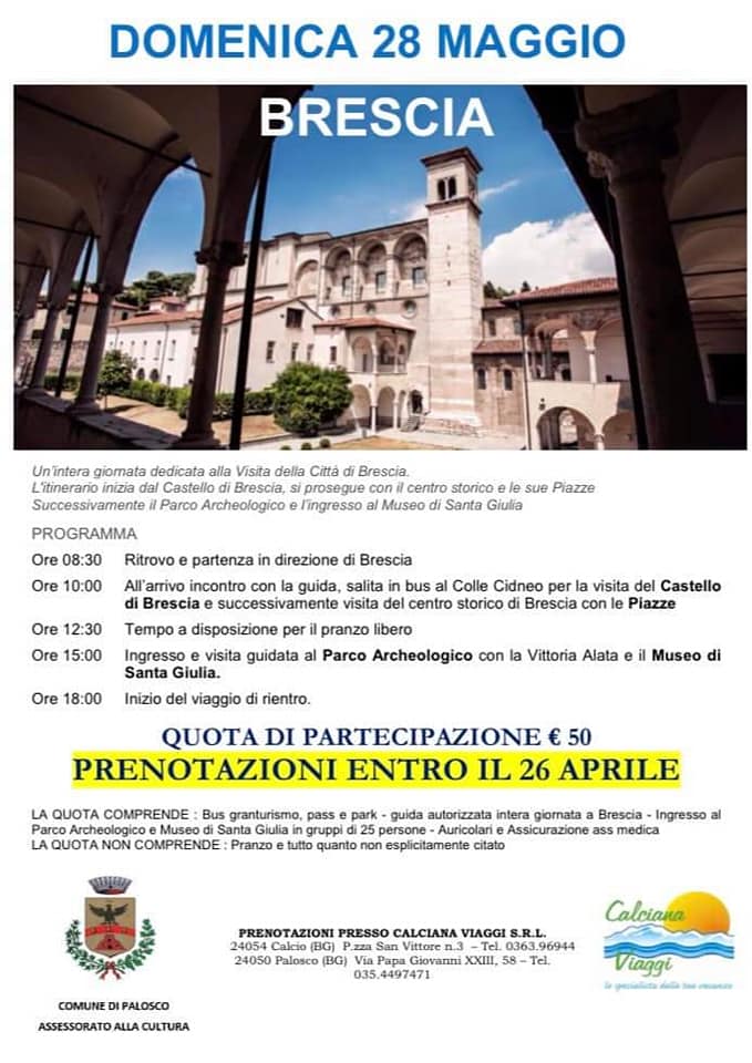 8:30 – Ritrovo e partenza in direzione di Brescia.