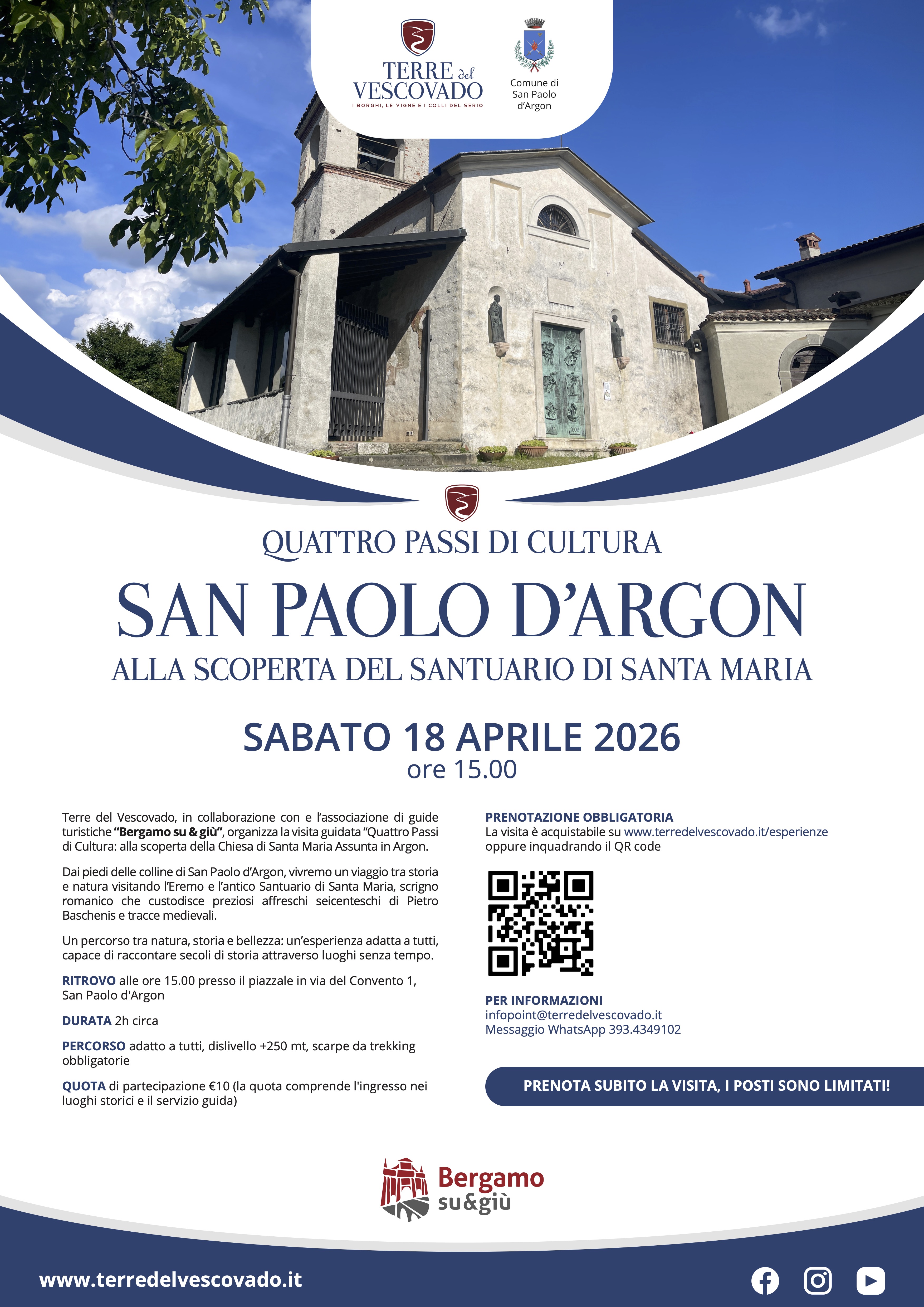 Terre del Vescovado, in collaborazione con e lโassociazione di guide turistiche โBergamo su & giรนโ, organizza la visita guidata tra i luoghi piรน iconici di San Paolo d'Argon.