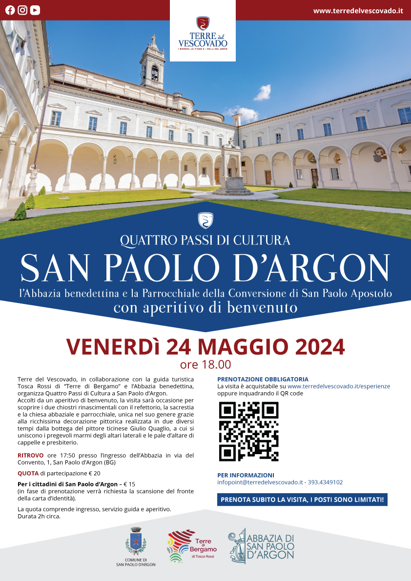 Terre del Vescovado, in collaborazione con la guida turistica Tosca Rossi di “Terre di Bergamo” e l’Abbazia benedettina, organizza “Quattro Passi di Cultura” a San Paolo d’Argon.