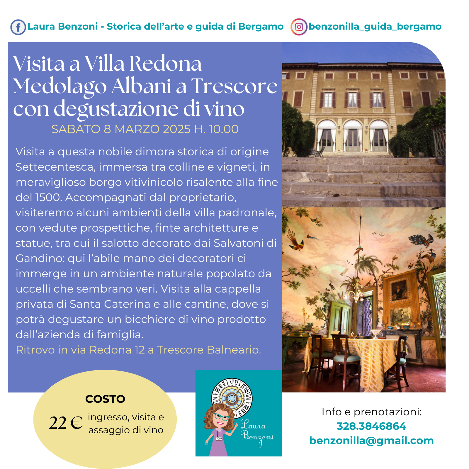 Visita e assaggio di vino in una dimora storica tra i vigneti di Trescore. Una idea per la festa della donna! Apertura straordinaria della villa Redona Medolago Albani a Trescore Balneario.