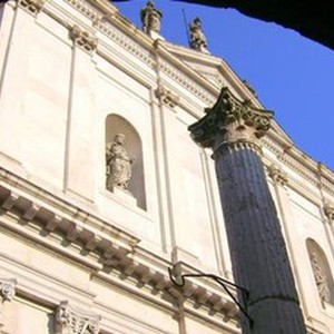 La chiesa che puoi vedere oggi, e sul cui sagrato si innalza la colonna risale al 1447, assunse la struttura attuale solo nei primi del Settecento; il campanile invece è stato terminato nel Novecento.
