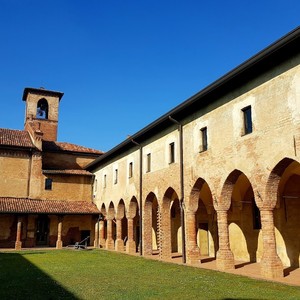 La Chiesa di San Bernardino, facente parte dell'omonimo complesso architettonico ora chiamato Centro Civico San Bernardino, ma edificato come convento, viene costruita a partire dall'anno 1472, come il resto del convento, e consacrata nell'anno 1489. Esternamente la chiesa presenta una facciata molto semplice, come di consueto per le chiese francescane, di tipica struttura gotico-lombarda. All'interno la chiesa si presenta divisa in due parti: la prima destinata ai fedeli è composta da un'unica navata, con tetto in capriate nascoste da un pregevole soffitto a cassettoni, datato 1684, e con tre capelle lungo il lato sinistro, dipinte in epoche più recenti. Un tramezzo divide questo spazio dalla zona dedicata al clero. Dal punto di vista architettonico, la compagine tardo-quattrocentesca è sostanzialmente intatta nelle sue parti strutturali e murarie ed anche nelle decorazioni. L'interno della chiesa possiede ancor oggi gran parte delle ricchezze artistiche originali: tra gli affreschi e i decori spiccano decisamente le opere del Fermo Stella, datate tra il 1515 e il 1531, anno cui è attribuito il ciclo della Passione di Cristo. Oltre a questo sono presenti opere di Nicola Moietta ed altri autori, tra i quali Federico Ferrari e i Fratelli Galliari. Le opere di maggiore interesse si concentrano nella navata destinata ai fedeli. Tra queste la più significativa, che colpisce ed incanta chi si affaccia nella chiesa, è la grande e drammatica scena della crocefissione, ad opere del Fermo Stella, che, con le altre scene componenti il ciclo della Passione di Cristo, occupano tutta la parete posta sopra l'altare che divide la parte riservata ai fedeli da quella (che era) riservata ai monaci.