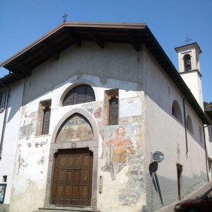 Nella chiesa si può ammirare un notevole ciclo di affreschi: la natività di Gesù con angeli e santi nella lunetta esterna (1502) e altri affreschi di notevole bellezza sono sulle pareti interne e nella sala sopra il coro. La pala dell’altare, attribuibile a Carpinoni, è una tela di fine XVI secolo con S.Anna nel momento in cui la figlia Maria le presenta Gesù bambino. La tela è racchiusa in una cornice barocca, fantoniana.