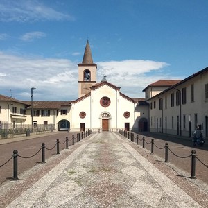 Il Santuario della Madonna della Basella sorge in prossimità del fiume Serio e la sua presenza è legata ad un evento prodigioso accaduto nel 1356: la più antica apparizione della Madonna in terra di Lombardia. Marina Casone si recò la mattina dell’ 8 aprile in un campo di proprietà della famiglia, vedutolo interamente coperto dalla brina, scoppiò in lacrime per la grave perdita economica che la gelata tardiva aveva provocato. Mentre piange disperata le appare una Bellissima Signora che tiene per mano un bambinetto, che le predice un raccolto abbondante: la Signora, rivelatasi poi come la Vergine Maria, invita la fanciulla a esortare i compaesani a scavare nel luogo dell’apparizione, così da far riemergere un’antica Chiesa a Lei dedicata (da qui il nome di Basella, poiché ritrovata “in basso”).