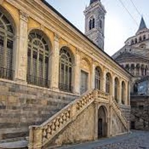 Dopo aver avuto sede provvisoria nell'ex refettorio e in alcune stanze del palazzo che oggi ospita il Liceo Sarpi in Piazza Rosate in Città Alta, nel 1818 si stabilì, come anticipato, nel vicino locale del Civico Museo, in Piazza Duomo e vi rimase fino al 1935.
