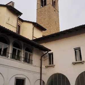 Il monastero sorse per volontà inizialmente del vescovo Algisio da Rosciate verso il 1258 e successivamente dal vescovo Erbordo: Venne scelta la locazione, in una zona ai piedi della città medioevale che avesse un buon approvvigionamento di acqua e che fosse vicina alle porte cittadine. Nel medioevo i monasteri furono non solo delle isole di pace e di elevazione spirituale ma anche centri di irradiazione culturale che attraverso i propri scriptoria mantennero e tramandarono il sapere. Le opere artistiche di cui erano dotati, a volte ingenue ma spesso espressione di un'arte compiuta e che tanta ammirazione destano oggi, erano un costante richiamo alla spiritualità non solo dei semplici e un'efficace descrizione didascalica di avvenimenti evangelici o religiosi in genere.