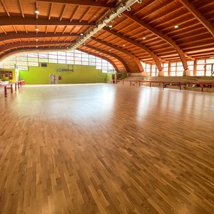 Oltre 700 metri quadri di parquet in Rovere accompagnate dalle tracciature regolamentari del volley, basket e calcio a 5, donano alla struttura un aspetto accattivante e moderno.
