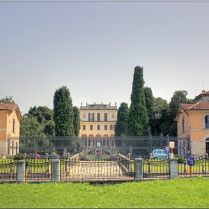 In quegli anni Vittorio Gnecchi Ruscone apportò rilevanti modifiche alla facciata della villa, che aveva ereditato dal padre Francesco e che, fino al 1888, era stata di proprietà della famiglia Confalonieri: la scalinata centrale fu dotata di balaustra in pietra scolpita; le finestre del terzo piano vennero private del terrazzo a ringhiera e, al loro fianco, in nicchie già esistenti, furono poste due statue; altre sei statue vennero allineate sulla sommità dell’edificio.