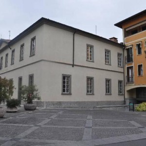 Piazza del palazzo comunale di Romano di Lombardia, edificio a corte, due piani d'altezza. Al piano terra i locali sono distribuiti da un portico ad archi ribassati che affaccia sulla corte interna, in corrispondenza del quale al piano primo si trova un corridoio finestrato.