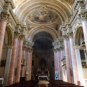 La chiesa attuale sorse negli ultimi decenni del ‘700. Aperta al culto nel 1792, venne dotata nel 1797 del campanile, al cui vertice si trova la statua del santo patrono. Consacrata il 24 ottobre 1867, nel 1923 fu prolungata nella parte absidale su progetto di Luigi Angelini.