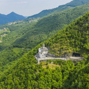 Il Santuario della Cornabusa di Sant’Omobono Terme è sicuramente uno dei luoghi simboli della Valle Imagna e di tutta la bergamasca. La sua collocazione è decisamente caratteristica, incastonato a mezza costa sul versante destro della valle, in una grotta naturale dove sgorga una sorgente d’acqua.