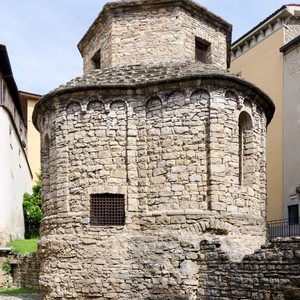 Il prestigioso complesso ecclesiastico di Bergamo Alta, composto dalla Basilica di Santa Maria Maggiore e dal Duomo, è completato dal Tempietto di Santa Croce, oggi più defilato ma un tempo elemento integrante del centro città. L’edificio viene citato già in un documento del 1133 e definito come “capella episcopi”, ovvero cappella del vescovo.
