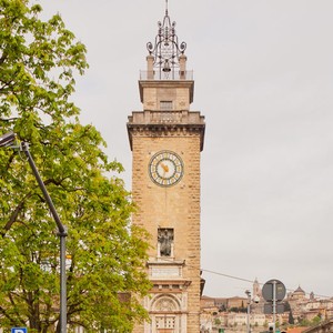 Costruita con conci regolari di pietra arenaria di Bagnatica, simile nell’aspetto a quella impiegata per l’edificazione delle torri della parte antica della città, la Torre, a pianta quadrata, con cinque piani, terrazzo e torretta, fu inaugurata nel 1924.