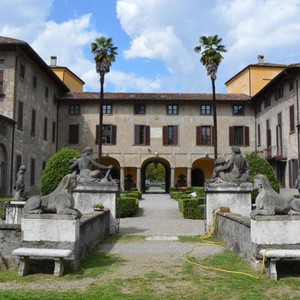 La villa si trova in centro a Seriate e affaccia il suo giardino settentrionale su via Dante; quello meridionale è delimitato da via Molino Vecchio ad est e da via C. Colombo a sud. Il corpo originario della villa, cioè il solo edificio rettangolare che da su via Tasca, fu costruito dai conti Vertova nei primi decenni del 1700. Sono successivi i due sopralzi laterali e alcune decorazioni, tra le quali si distingue il medaglione con l'immagine di Torquato Tasso, posto in facciata. All'interno un elegante porticato a colonne binate d'impostazione secentesca, termina su due edifici a bugnato di malta. Da questi partono altre due strutture rettangolari più basse risalenti alla seconda metà dell'Ottocento, probabilmente volute dai successivi proprietari della villa, i Tasca prima e gli Ambiveri poi.